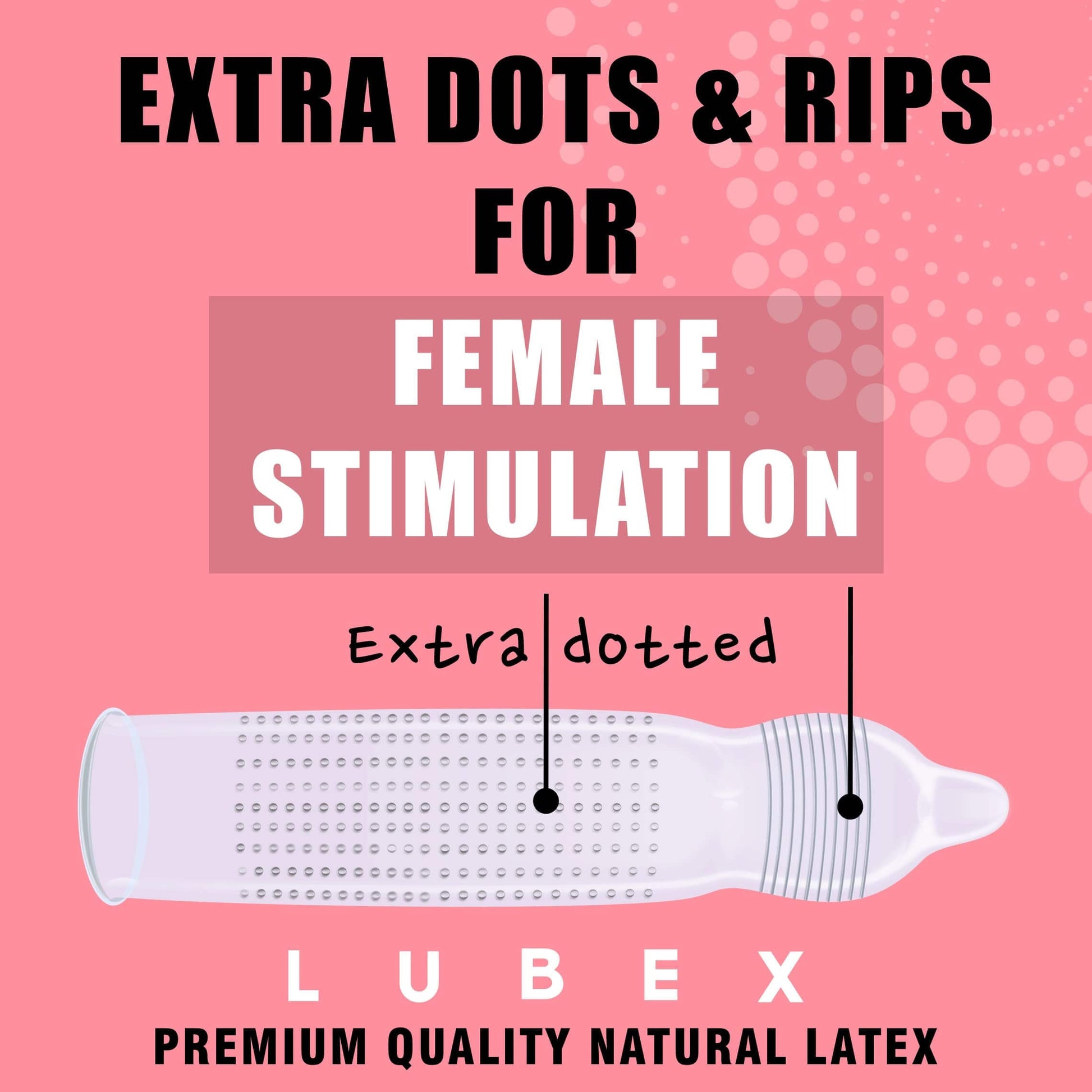 Lubex 6 in 1 Long Lasting Condoms with Disposable Bags - Ultra Thin & Extra Dotted - 12 Condom (Pack of 1)